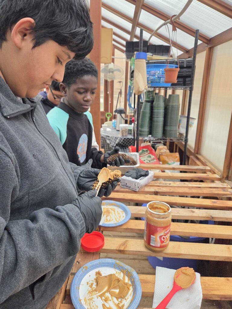Students worked together to make pinecone bird feeders, spreading peanut butter, adding seeds, and preparing feeders that will help support birds through the cold months. The activity encouraged teamwork, creativity, and thoughtful care for wildlife during winter.