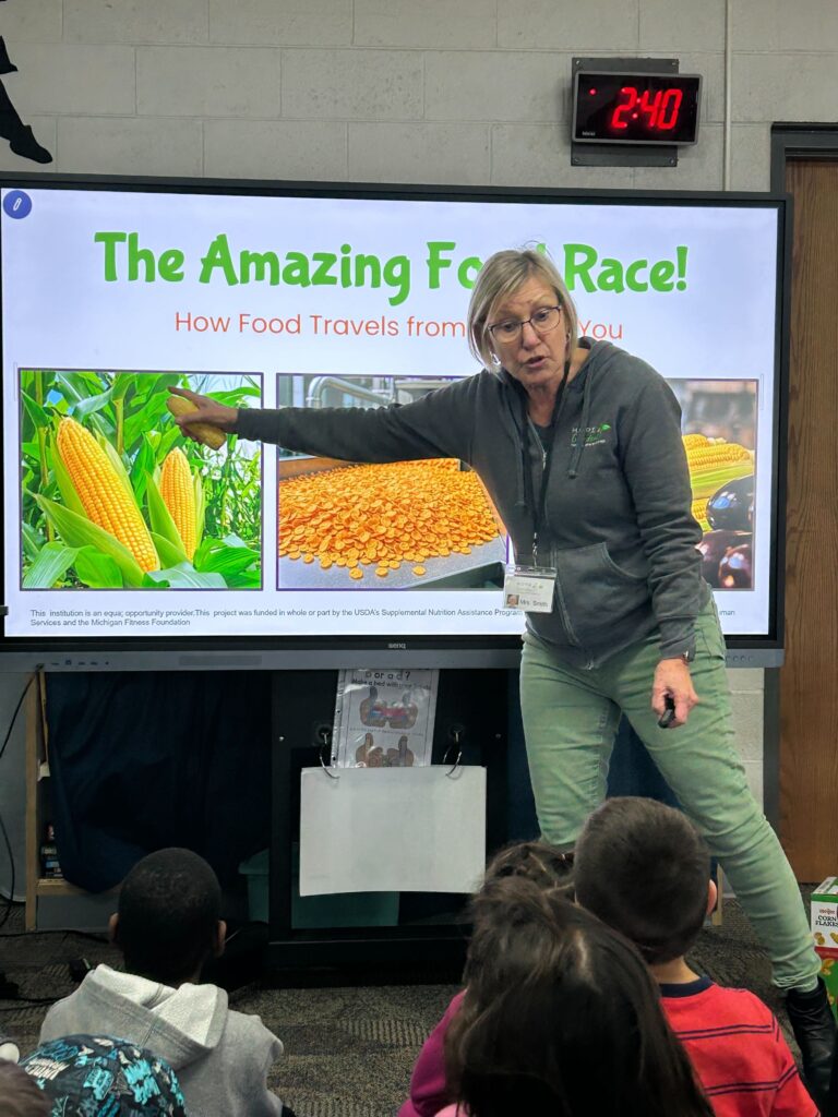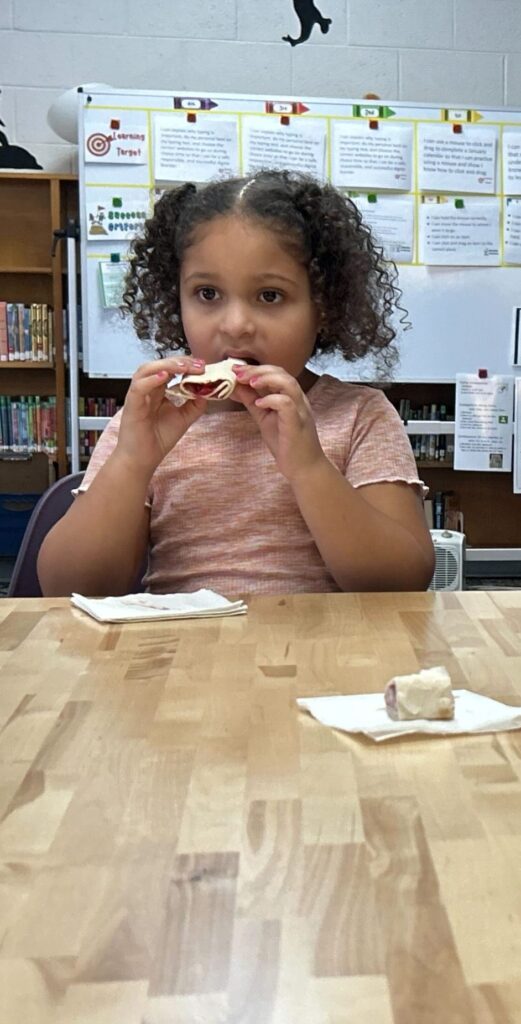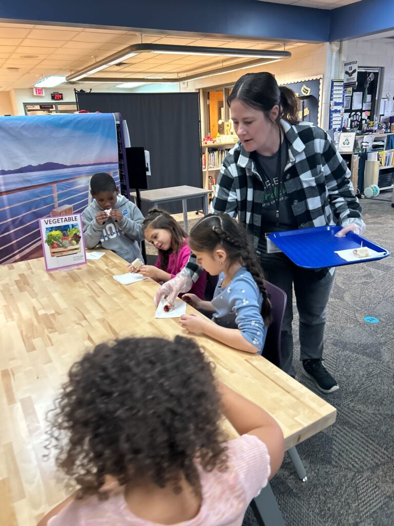 To wrap up the lesson, students enjoyed a tasting that brought it all together. They sampled Fruit Roll-Ups made with whole wheat tortillas, strawberry cream cheese, bananas, strawberries, and dried cranberries. It was a hit and a delicious reminder that understanding our food system can be both educational and fun.