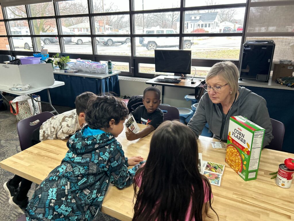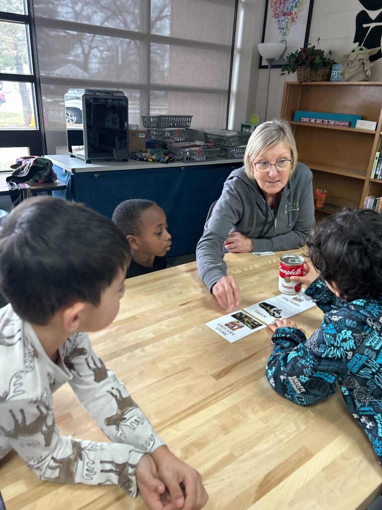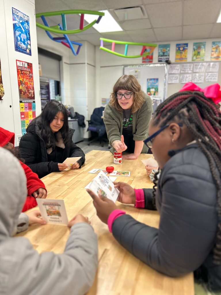 The learning continued in small groups, where students traced the path of tomatoes and tomato sauce from farm to table, and compared fresh fruit to canned fruit. These hands-on activities helped students see how different choices affect freshness, nutrition, and processing.